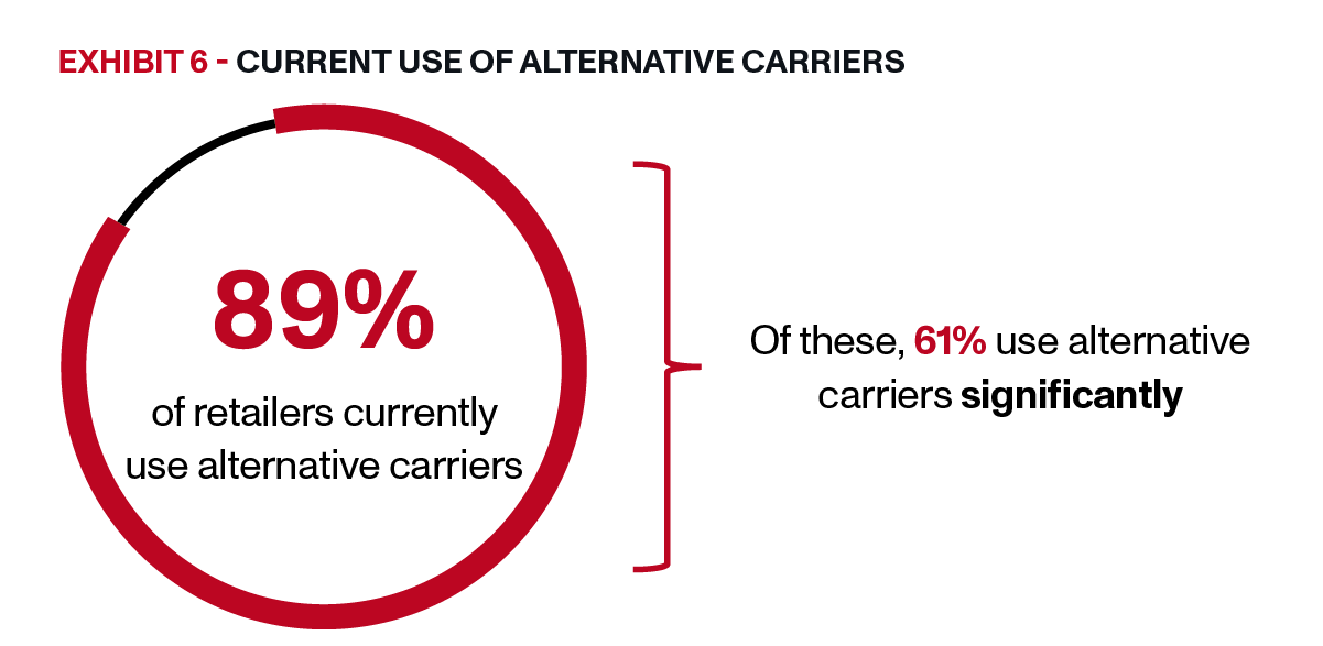 Retailers that do not leverage alternative carriers are at a competitive disadvantage. When looking to add alternative carriers, it is important to be proactive and secure a partner well in advance of peak season. Waiting until Q4 is too late, as most alternative carriers have already planned for a certain amount of volume to deliver across their networks and will not be able to take on additional customers.